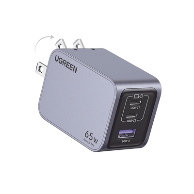 Cargador de 65W serie Nexode Pro | 3 Puertos de Carga Rápida | 2 USB-C | 1 USB-A | Tecnología GaNInfinity | PD3.1 de 65W / QC4.0 | Tecnología de Protección Térmica | Optimiza la Carga | Caja de Aluminio | Incluye Cable U