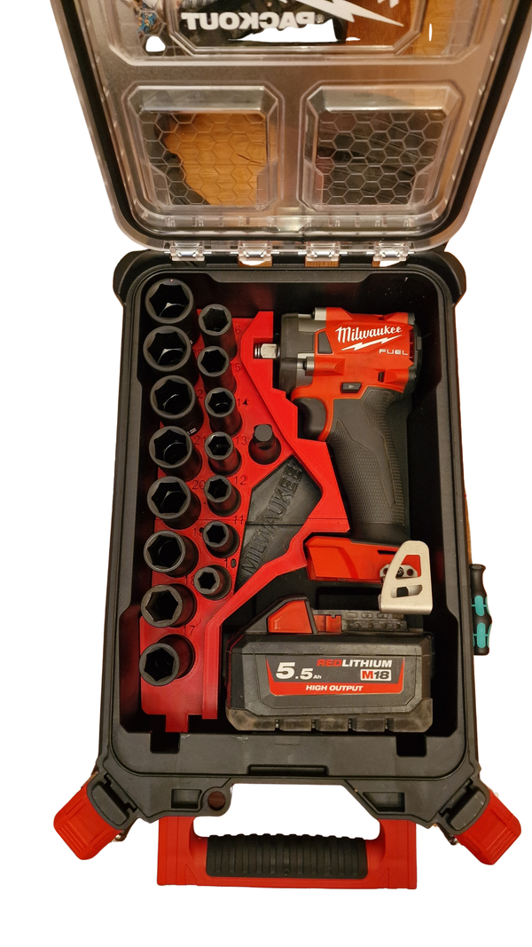 Inserto PACKOUT para Llave de Impacto Milwaukee M18 FIW2F12 + Set de Dados de Impacto 1/2" (16 piezas)