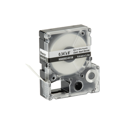 Casete de Etiquetas de Poliolefina de Cinta Continua, Tubo Termocontráctil, 8.6 mm (0.34 Pulgadas) de Ancho y 2.4 Metros (7.87 Pies) de Largo, Para Cables de 1.5 a 4.8 mm (18-12 AWG) de Diámetro, Color Blanco