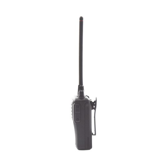 Radio portátil VHF 136-174 MHz, práctico y ligero, MIL-STD-810, 16 Canales, DTMF, IP54, VOX, Scan, Incluye antena, batería, cargador y clip