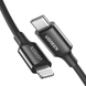 Cable USB-C a Lightning | 1 Metro | Certificado MFi | Carga Rápida 60W | 480 Mbps | PD | Conector C94 | Adecuado para iPhone, iPad y iPod | Protección Integrada | Caja de ABS | Cubierta de TPE | Color Negro.