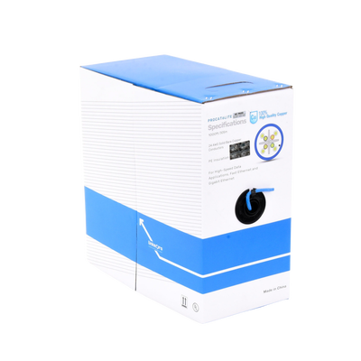 Bobina de cable de 305 metros Cat6, CM, 24 AWG, Alto Rendimiento, ETL, UL, color azul, super flexible, para aplicaciones de videovigilancia, video HD, y redes de datos. Uso interior