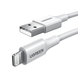 Cable USB-A a Lightning | 1 Metro | Certificado MFi | Carga Rápida 5V/2.4 A| 480 Mbps | PD | Conector C89 | Adecuado para iPhone, iPad y iPod | Protección Integrada | Caja de ABS | Cubierta de TPE | Color Blanco.